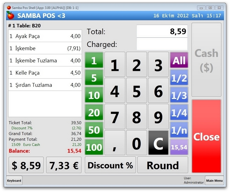 SambaPOS is an Open Source POS Application for restaurants. You can install & use it for free without any limits. SambaPOS currently supports English, Spanish, Dutch, German, Italian, Arabic, Hungarian, Turkish, Indonesian, Portuguese (Brazil), Croatian, Chinese and Croatian languages.
