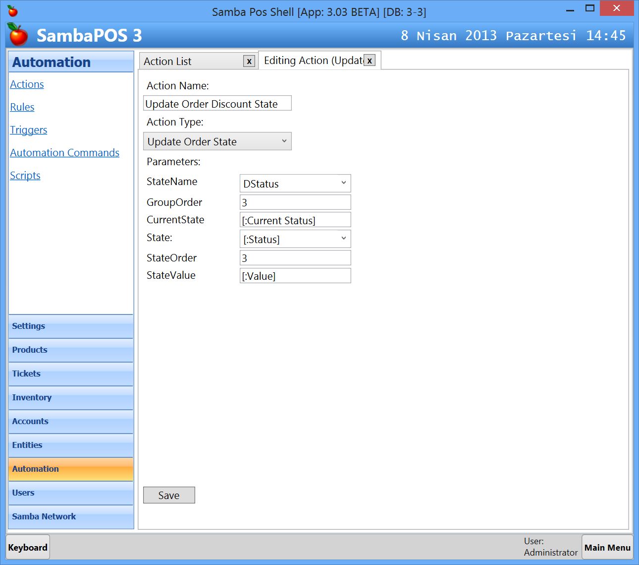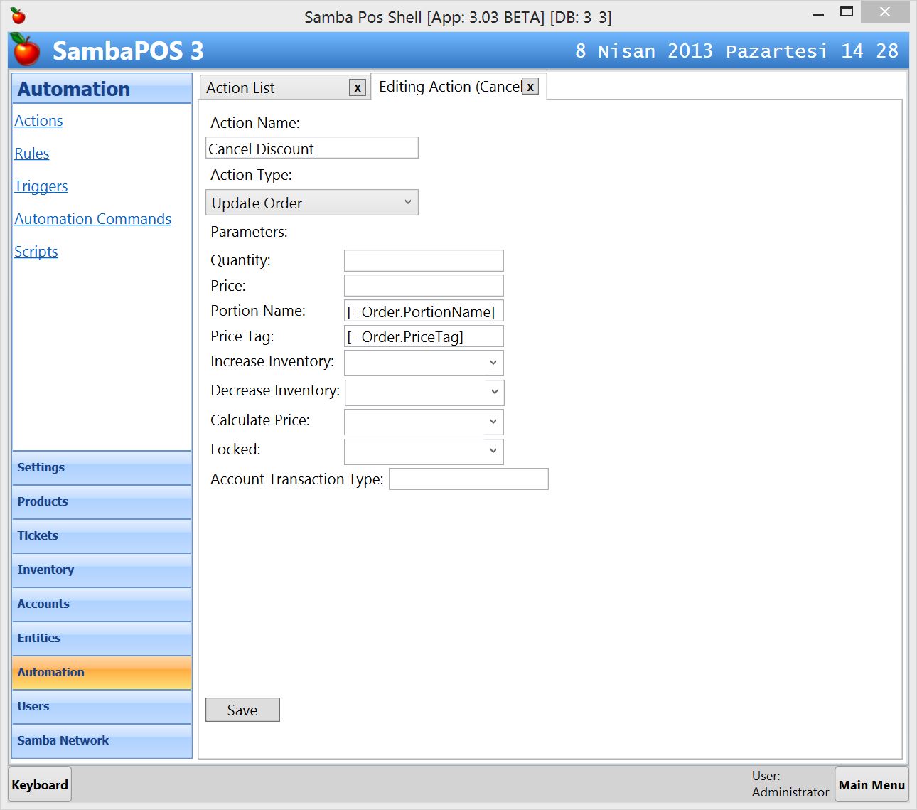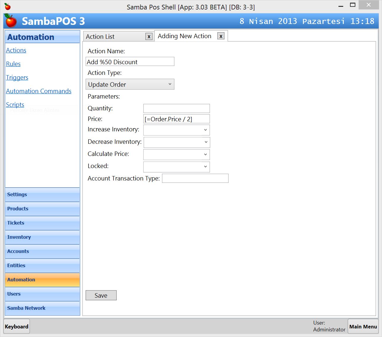 These are the needed actions. Now we'll create two Automation Commands. One of them will display "%50 Discount" button and the other button will be "Cancel Discount"