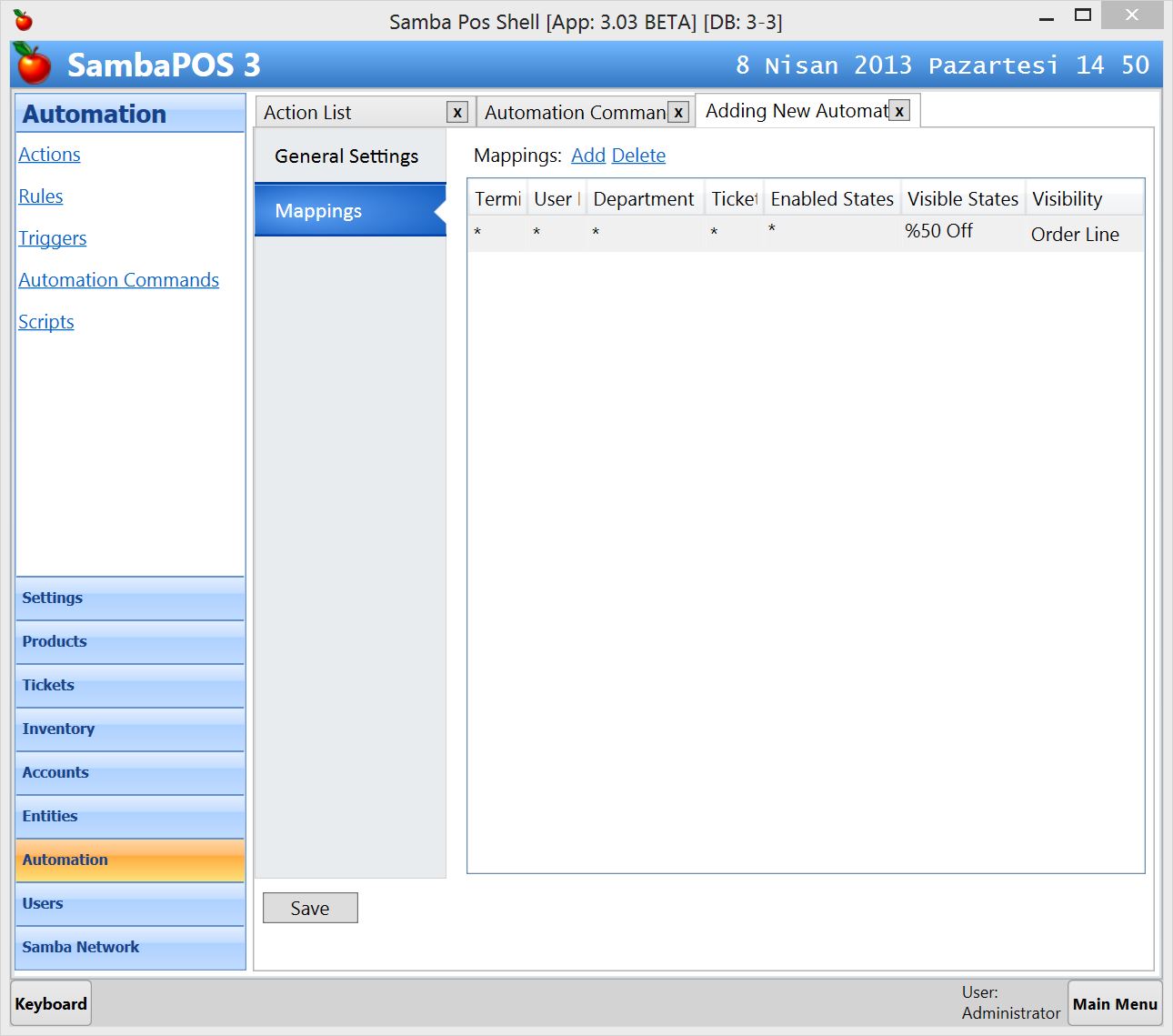 When a discount applied we'll need another button to cancel that discount. Create a new Automation Command, name and color it as you need. Switch to Mappings Page.