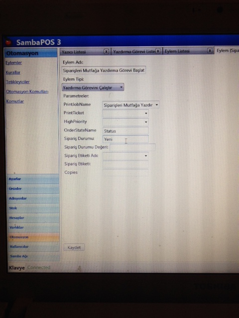default olarak gelen siparişleri mutfağa yazdırma görevinde böyle bir sorun yok neyi eksik yapıyorum 3 gündür bunla uğraşıyorum