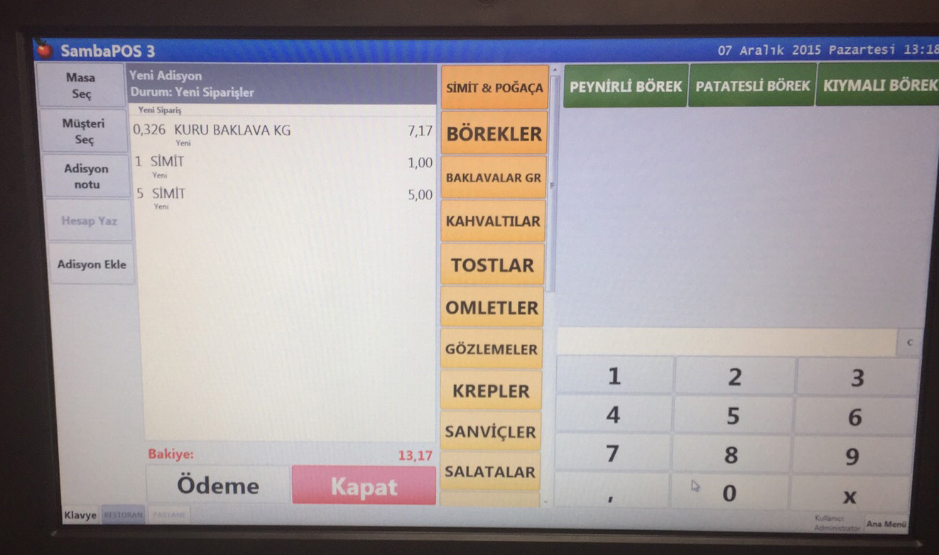 *Toplam doğru, samba ekranı doğru fakat adisyon fişini düzeltemedim.