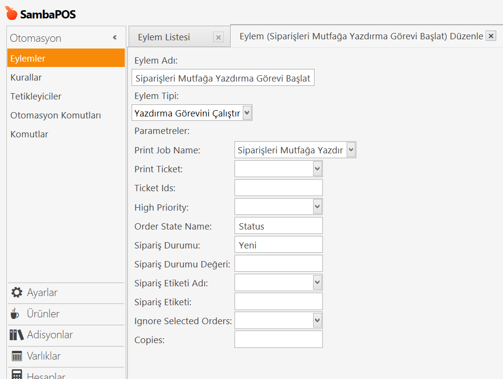 İkinci bir Yazdırma Görevi tanımlayıp bu Görevin içine de Menü ürünlerinizi yönlendirerek ve bu yazdırma görevini ilgili Kural ile çalıştırarak da yapabilrsiniz.