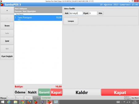 Kullanım için ürünü adisyona ekliyoruz ve üzerine tıklıyoruz. Yanda çıkan ektra özellik bölümüne özelliği yazıp ekleye tıklıyoruz hepsi bukadar.