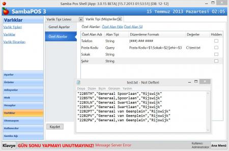 Selamlar. Ben bu özelliği v2 deki müşterilerimizi v3 e aktarmak için kullanabilirmiyiz diye düşündüm. Mesela v2 deki müşteri listemizi test.txt haline getirsek ve telefon çalınca numaraya tıkladığımızda ordaki verileri çekse ve yeni müşteri diyi kayıt yapsak sonradan gereksiz olduğunu düşündüm sonuçta bütün müşterileri toplu olarak aktarmak varken bu şekilde uğraşmak saçma olur. Ama kendimi denemekten alıkoyamadım=) ama gördümki isim soy isim bir özel alan olmadığı için çekilemiyor. isim soy isim için bir özel alan oluşturarak yapabiliriz ve isim bölümünede benzersiz id girebiliriz. bu daha önce karşılaştığımız aynı isimde varlık var hatasınında çözümü olabilir belki. Müşteri ad soyadını özel alan olarak ekleyebiliriz benzersiz id olarak telefon numarası kullanırız. Aslında varmak istediğim sonuç ise bunu denerken tr karakter sorunuyla karşılaştım. Tel no girerek isim soy isim çekmek istedim ve tr karakterler ? olarak çıktı. Selametle.