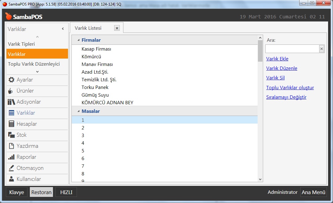 Garson adında sorun yok bence. ama Masa adı hatalı. Varlıklarınızda masalarınızını ne isimle tanımladınız?