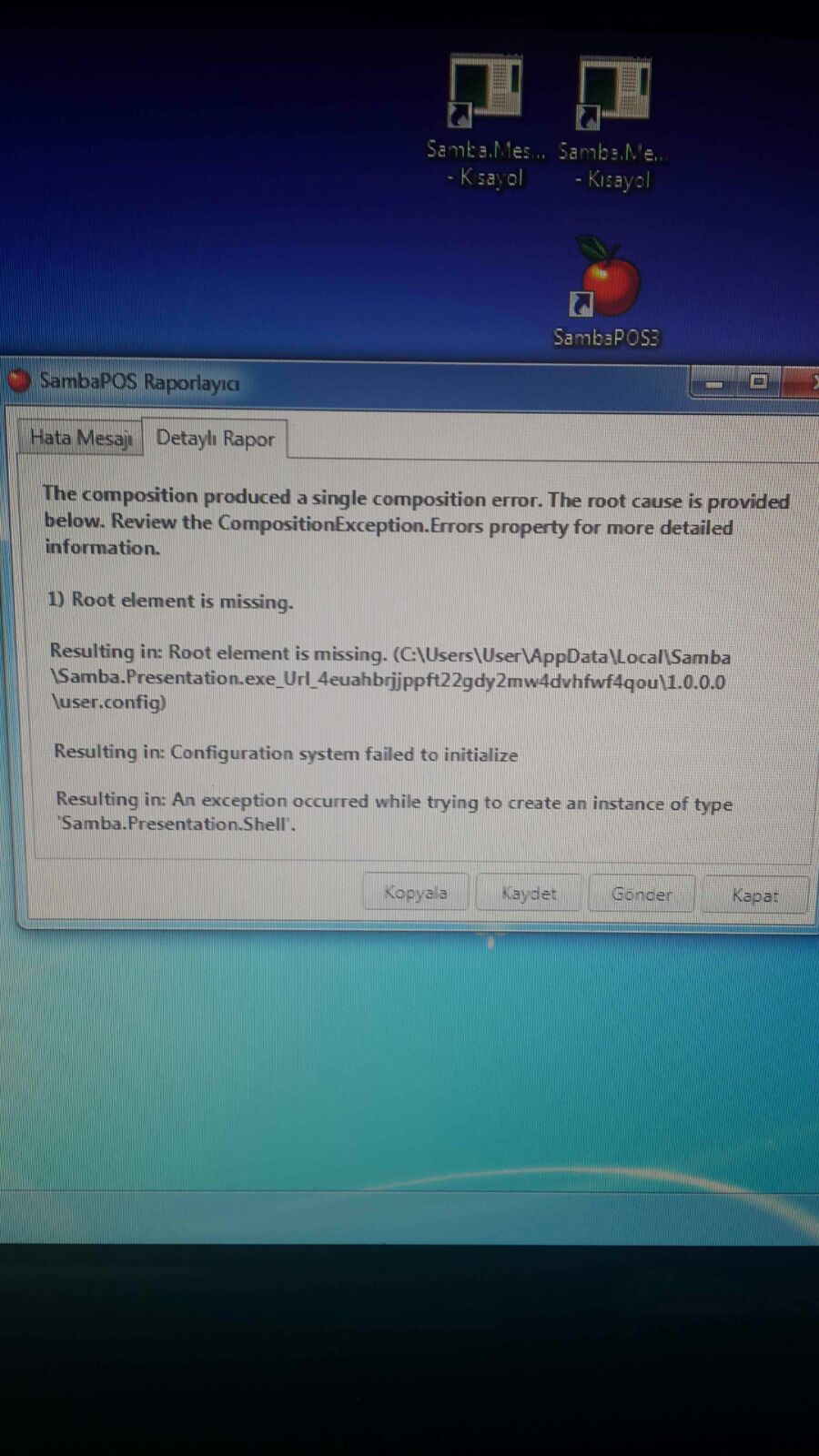 Merhaba Restoranda Elektirikler kesilince bilgisayar resetlendi ve sambapos kullanamaz oldum. Hata ekranı şu Şekilde.