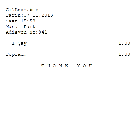 Yazıcı tipi adisyon yazıcı olarak seçildiyse ve termal yazıcıdan basıyorsanız görünür logo.