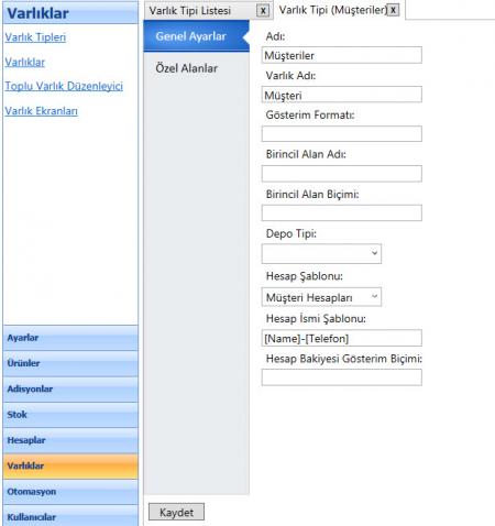 Buradaki örneğin Müşteri varlık alanları aşağıdaki gibi oluşturulmuştur. Sizde farklı ise dizaynı ona göre ayarlamalısınız