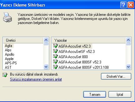 4-Windows ta tanımlı yazıcıların dirivers listesi gelecek.Burada disketi var deyip yolunu belirtiyoruz.