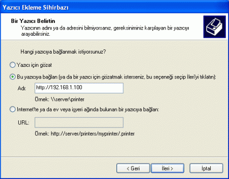 3-İkinci seceneği secip http:// ip adresini yazıyoruz.İleri tıklıyoruz