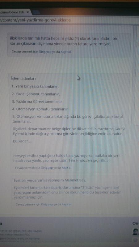 Açıklama için teşekkürler mehmet bey.  ekte resimde gönderdiğim Fatura yazıcısı ile ilgili cevapladiğıniz açıklamayı uyguladım. Artı olarak eylemler deki adisyon yazdırma görevini çalıştır komutunun kopyasını oluşturarak amacıma ulaştım :)) teşekkür ederim. İyi çalışmalar