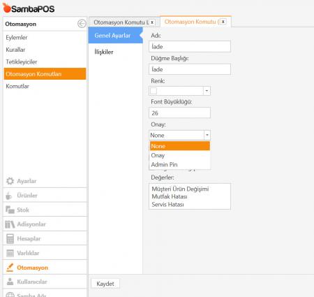 V4 de ilgili otomasyon Komutunda Onay alanında istediğiniz gibi şifreleyebilirsiniz.