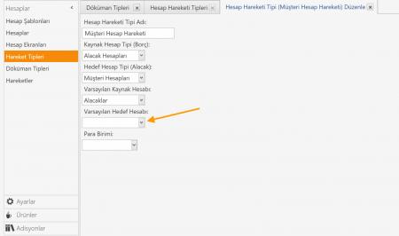 Müşteri Hesap Hareketinde Varsayılan Hedef Hareketini Boş bırakırsanız hangi Müşteri seçili ise onun hesabına yazar.