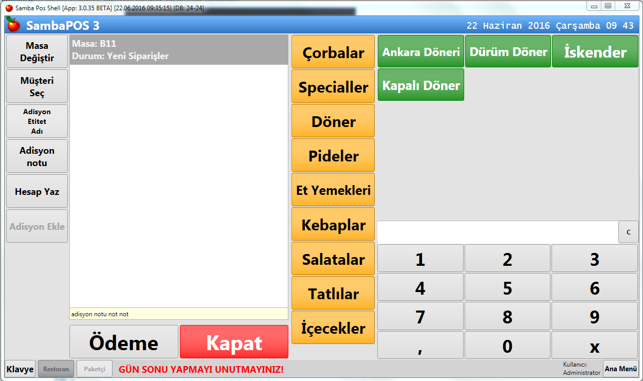 Boş bir masanın üzerine tıklayıp sadece adisyon notu girip hesap yaz diyebilmek istiyorum.