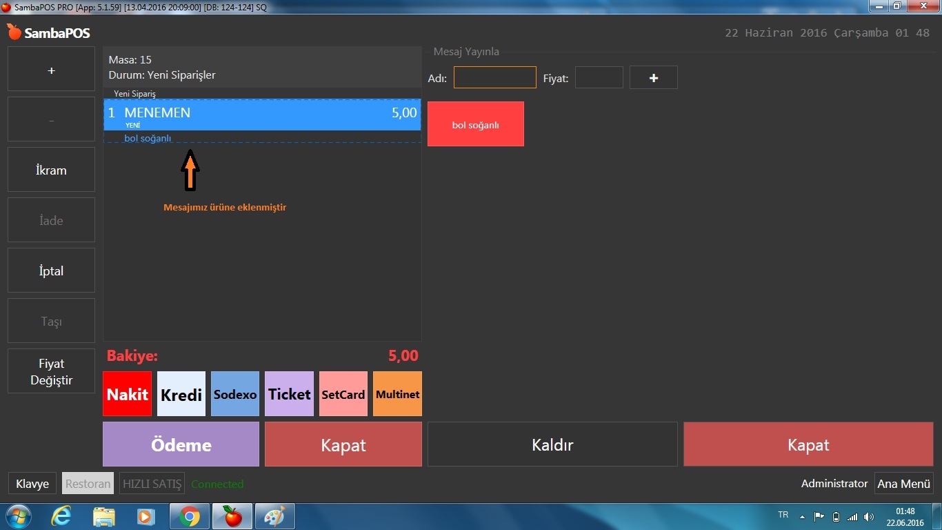 Öncelikle adisyon notumu yoksa ürüne mesaj mı yazdırmak istiyorsunuz ? hangi versiyonu kullanıyorsunuz ekteki fotograflarda ürün içeriğine extra özelliği manuel yazdırabiyorsunuz ve raporlarda alt ürün raporu olarak rapor oluşturabiliyorsunuz?