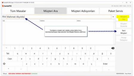 Merhaba Gelişmiş paket servis uygulaması dökümanında anlatılanraı uygularken farkettiğim şöyle bi sıkıntı var.Müşteri ara varlık ekranını adisyon tipi (Paket Servis olarak işaetlendiğinde)değiştirildiğinde Müşteri Seç Butonu kayboluyor. Müşteri seç butonunu nasıl aktive edebiliriz