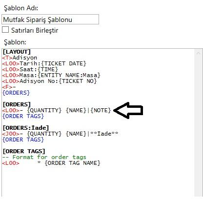 Burda Ekranın Sağında Sizin istediğiniz Adisyon notunun Kodu Yazmakta ^{NOTE} Adisyon notu^ diye Bunu Şuraya Yazın