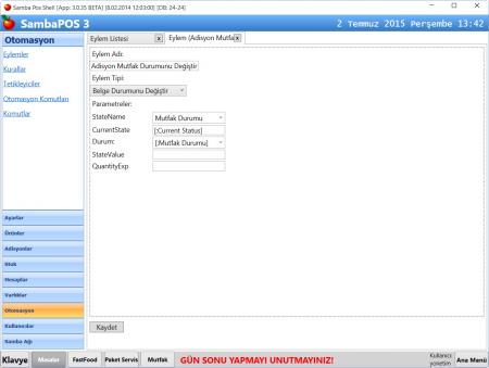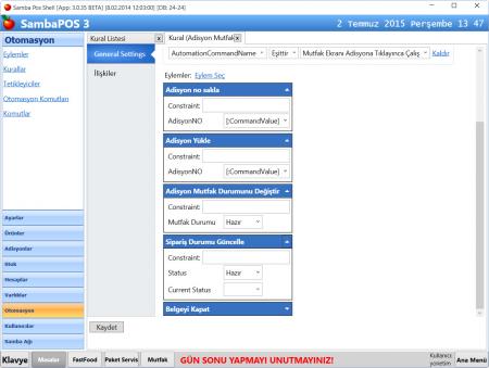 Artık Adisyonun Mutfak Durumunu takip etmek için yeni bir Durumu olduğuna göre bunun değiştirilmesi esnasında olacak olan değişiklikleri düzenlediğiniz Kuralınızı da aşağıdaki gibi (:Value --> :CommandValue) olarak düzelttiğinizde Adisyonun üstüne tıklandığında Durumunun Hazır olarak değiştirildiğini ve ekrandan kaybolduğunu görebilirsiniz.
