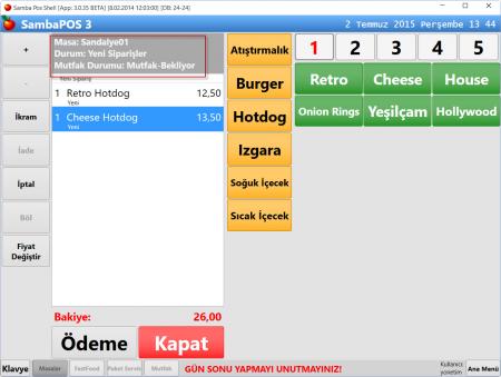 Merhaba. Sambapos3 içerisinde seçtiğim masa adisyonu durumu "yeni" olarak başlıyor ve siparişi verip adisyonu kapadıktan sonra tekrar açana kadar durumu "ödenmedi" olarak işaretleniyor. Buraya kadar herşey normal.
