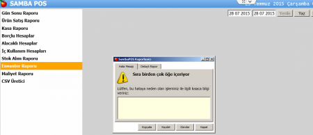 konum: Samba.Modules.BasicReports.ReportViewModelBase.<>c__DisplayClass9.<RefreshReport>b__2(Object , DoWorkEventArgs ) C:\Projeler\SambaPOS2\Samba.Modules.BasicReports\ReportViewModelBase.cs içinde: satır 179