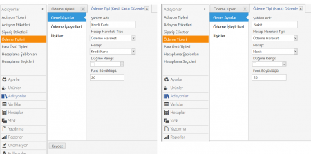 Daha sonra tek kural oluşturarak "Nakit, kredi kartı ve belgeyi kapat eylemlerini seçtim. Bu sefer de her iki butonda çalışıyor fakat en üstte hangi eylem varsa o hesapta gösteriyor.