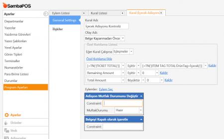 Daha sonra bu siparişleri ekrana yazdıran Kurala (Belge Kapanmadan Önce) Özel bir Kısıtlama Ekleyerek İçecekleri bu ekrandan yazdırmamış oluyorum.