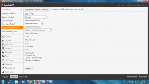 M.Demirkan sana sanırım Yönetim>Adisyonlar>Hesaplama Şablonları>İskonto Hareketi çift tıkla diyecekti sanırım bu yolu izle ve oradaki oran veya tutarları 0,00 olduğunu kontrol etmelisin