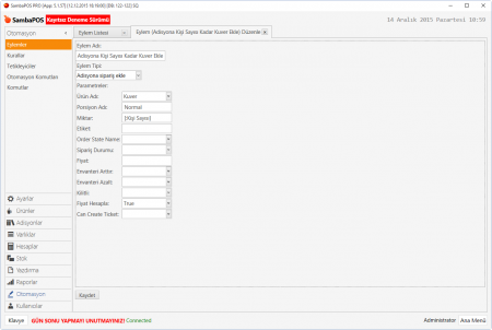 Mehmet bey bu güzel anlatımınız için bende teşekkürederim. Kusursuz Şekilde çalismaya basladı SambaPOS çalışma prensiplerine vakıf olmamız bu Sisteme katkılarımızı sağlıcak. TEKRAR TEŞEKKÜREDİYORUM.