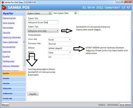Eylem Kuralı: (SambaPOS v2'de Adisyona Ürün Ekle, SambaPOS v3'de Adisyona Sipariş Ekle, ) Olduğundan Bunu Belirttim