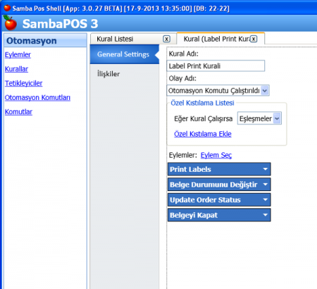 6. Bu Eylemi çalıştıracak bir Kural Ekleyin. Olay Adı: Otomasyon Komutu çalıştığında olacak. Otomasyon Komutu olarak tanımladığınız komutu seçecek ve Eylem olarak da tanımladığınız Yazdırma Görevini seçeceksiniz.