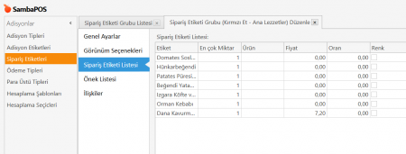 Yeni bir Sipariş Etiketi ekledikten sonra;