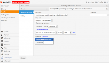 Bu sayede, adisyona Müşteri seçildikten sonra eğer Müşterinizin Tipi BLY ise sizin belirlediğiniz fiyattan satış yapacaktır.