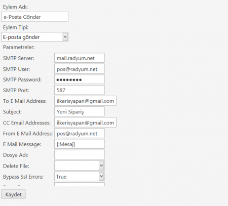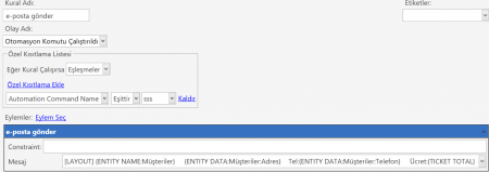 Problemi.Maile ek atamak yerine Email message kısmına [:mesaj] kurallarda mesaj kısmınada {ENTITY NAME:Müşteriler} {ENTITY DATA:Müşteriler:Adres} Tel:{ENTITY DATA:Müşteriler:Telefon} Ücret:{TICKET TOTAL}yazarak çözdüm .fakat tek sorunum {ORDERS} ile ürünleri ekleyemedim. verilen siparişleri de eklemek için ne kullanmam gerekir