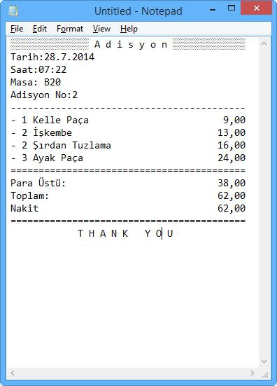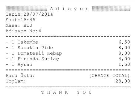 Mehmet Bey, dediğiniz gibi yaptım. Adisyon fişi bu şekilde çıktı.