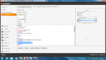Başka bir bilgisayara sıfırdan sambapos'u yükledim. Proğramda hiçbir düzenleme yapmadım. Yazıcı Şablonunda sadece sizin dediğiniz değişikliği (yukarıdaki resimlerde görüldüğü gibi) yaptıktan sonra, Adisyon Yazdırdım. Sonuç yine aynı. :(