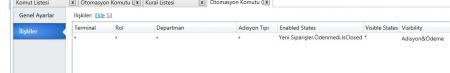 Samba Pos  v3 ' de "Hesap  Yaz " butonunun otomaston komut ayarlarına giriyorum. Karşıma çıkan ekran şu :