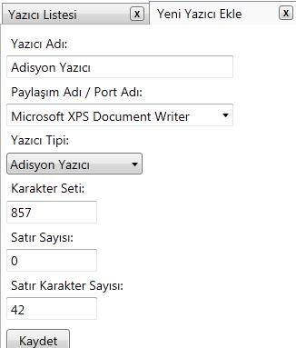 Yönetim/Ayarlar/Yazıcılar/Adisyon Yazısını Açarak PAYLAŞIM ADI olan Alana Yazıcınızı Ekleyin.