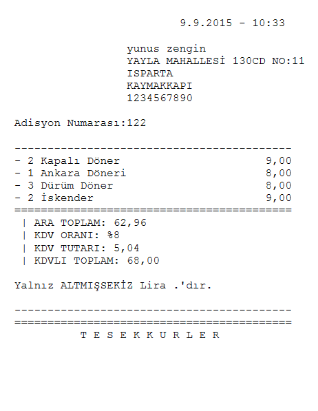 Aslında ihtiyacım olan farklı idi, Kdv Şablonuna %8 şablonu ekledikten sonra her adisyona kdv yi + olarak ekliyordu. yani 100tl lik ürün oluyordu 108,00 TL. bunu KDV Dahil 100Tl hesaplatmak için sormuştum.