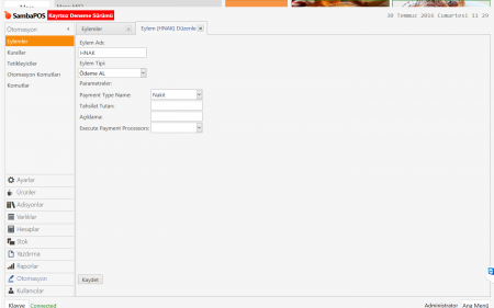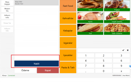 Belgeyi kapat 'da ekledim şuan nakit 'e bastıgımda tepki yok.ödemeye bastığımda direk kapatıp hesabı nakit olarak ödüyor.Kredi kartı vs. de eklemem gerekiyor