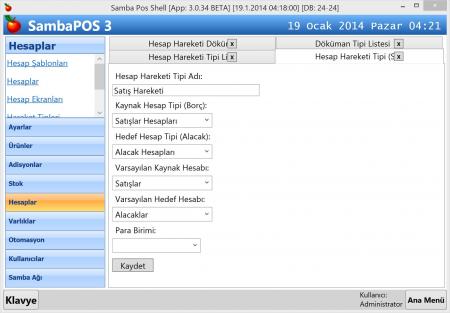 Kasa uygulaması yaparken adisyona bağlı satış hareketinin hesaplarını değiştirimiş olabilir misiniz? Normalde şöyle görünmesi gerek.