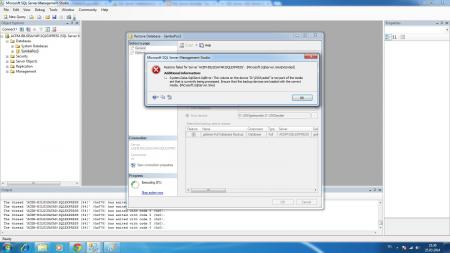 Zaten var olan bir veritabanı üzerine Restore yapmak istediğinizi söylüyor. Ya veritabanını sil sonra Restore et yada Options tabında "Overwrite the exiting database" kutucuğunu işaretleyerek var olanın üstüne yazdırın.