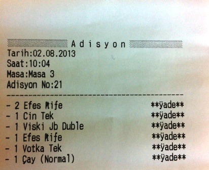 Programda da yok yazıcı çıktısında yok.