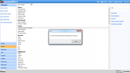 Ekte göreceğiniz resimde "Kaymaklı Ekmek Kadayıfı" diye bir ürünümü silmek isterken hata uyarısı alıyorum.Ve bu ürün benim menü listemde yer almamaktadır.Sebebi nedir acaba ?