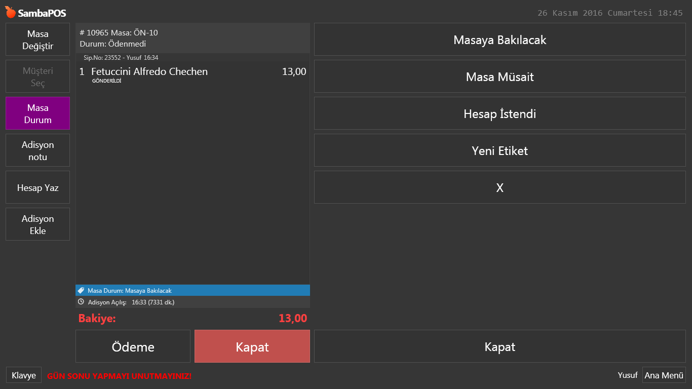 xx Dakika Sipariş alınmayınca masanın rengi değişmesi ?