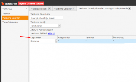 * Birden fazla departman alt alta seçerek farklı yazıcılara gönderilmesini sağlayabilirsiniz.