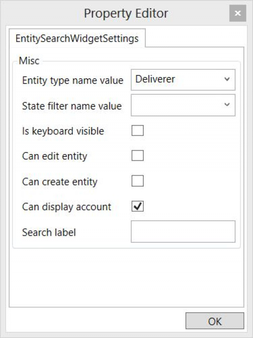 Move this widget to the right bottom corner of the screen and resize it to the top. It is the easiest way to position widgets. This widget looks like our customer search screens. Since the Entity Type of this screen is “Deliverers” widget automatically configured itself to search deliverer entities.