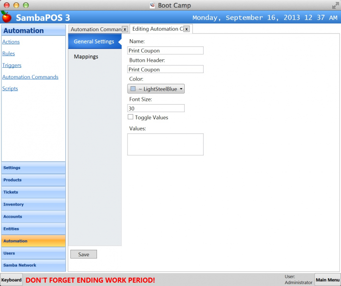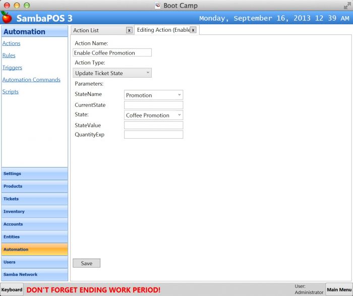 We’ll just disable Coffee Promotion and Refresh Ticket to hide command buttons. On this ticket these buttons won’t enable again. After testing it we can configure next button.