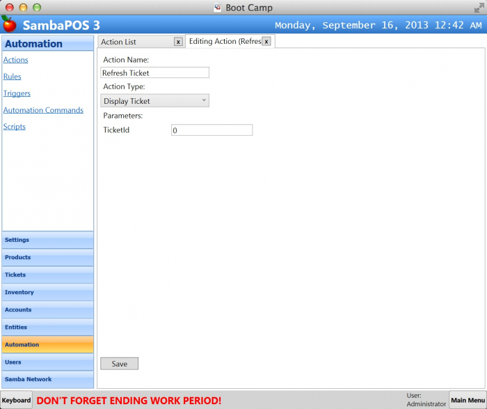 Executing Display Ticket action with Ticket ID set to zero should refresh current ticket.