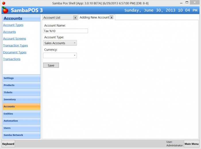 Now I have to tell SambaPOS how these accounts works. There are lots of different tax rules on different countries so that configuration may differ but this sample should work on most cases.