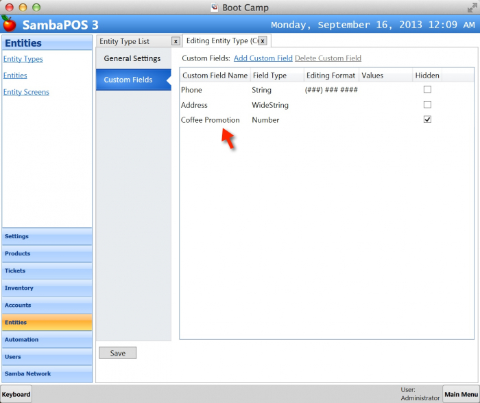 I’ve added a Number field named as Coffee Promotion. I’ve also enabled Hidden setting to hide this field on Customer listings.